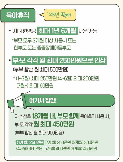 2025년 육아휴직 기간 확대, 급여 인상 등 다양한 혜택을 적극 활용하여 일과 가정의 균형을 이루고, 행복한 가정을 만들어 나가시길 바랍니다.