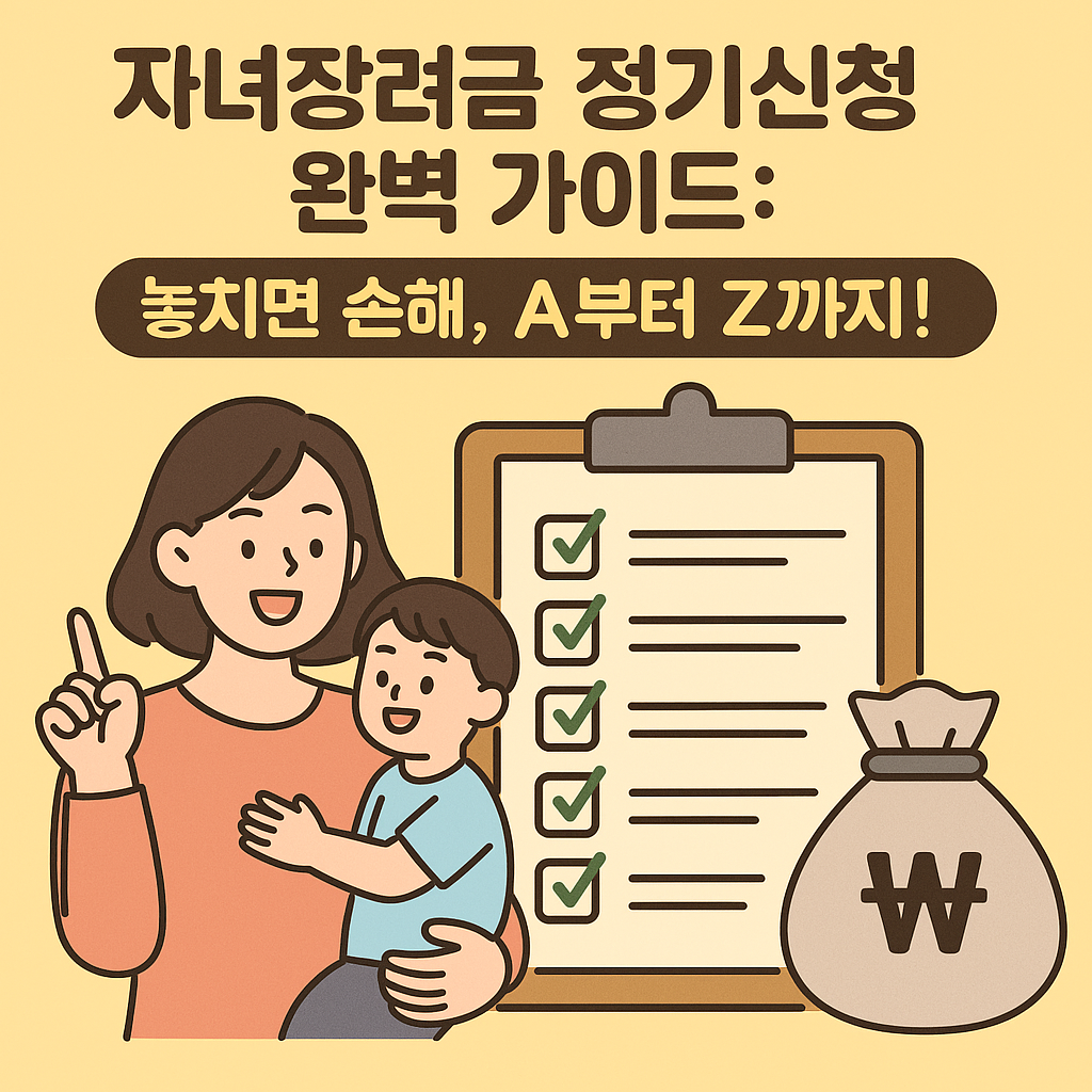 자녀 양육에 대한 경제적 부담을 덜어드리기 위해 정부에서 지원하는 자녀장려금 정기신청! 복잡하다고 느껴지시나요? 걱정 마세요. 이 글에서는 자녀장려금 정기신청에 대한 모든 것을 쉽고 명확하게 설명해 드립니다. 신청 자격부터 방법, 지급액, 그리고 주의사항까지, 놓치면 손해 보는 꿀팁들을 지금 바로 확인하세요!